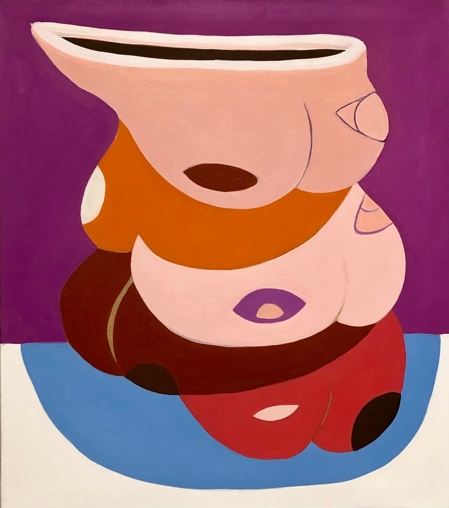 FINNISH POTTERY is a painting project based on our interest in materiality and how objects are collected and given different values. The images in the series specifically play with fictional ceramic objects and the painted visualizations give them the character of portraits. Conceptually, my project refers to ideas about capitalistic consumption and especially conspicuous consumption which thrive to elevate status related to the societal norm. The images in the series have a consistently queer and feministic character by formally integrating and flirting with human body parts and bodily deviance. The queerness is conceptually integrated in the visualized objects as unique creations which do not represent todays normative status object. The ironical and humorous twist of the theme should be obvious.
