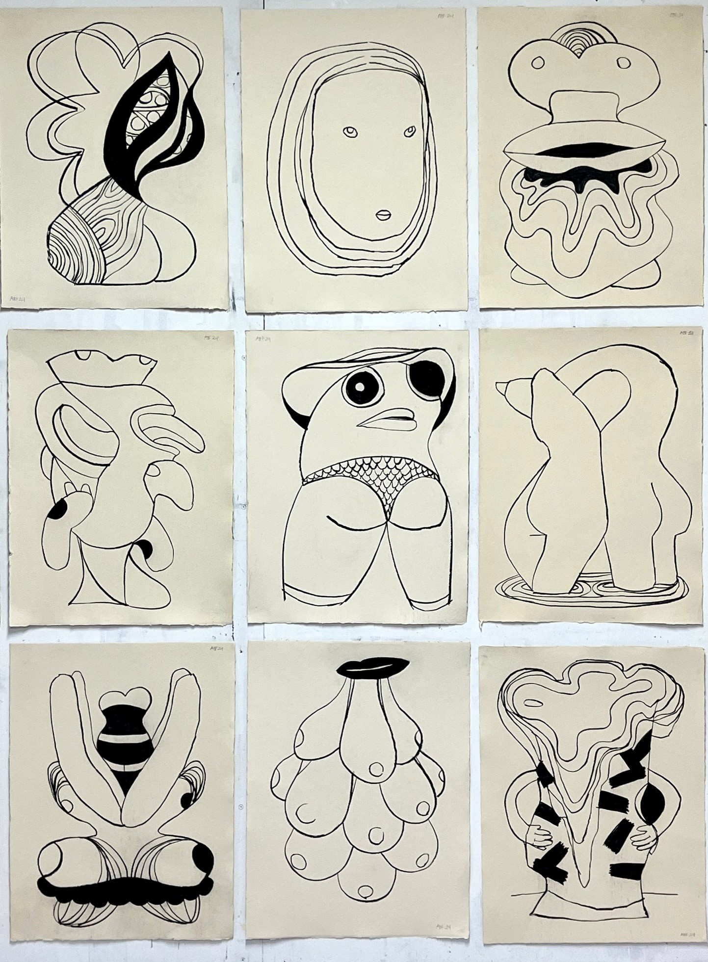 ProtoFemmes (2024) ProtoFemmes is a body of work consisting of 17 charcoal drawings on Hahnemüehle paper, each 52 x 42 cm (2024) Studio view October 2024 Share this: Share on Facebook (Opens in new window) Facebook Email a link to a friend (Opens in new window) Email